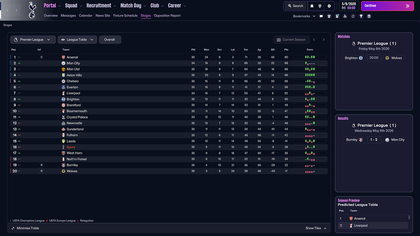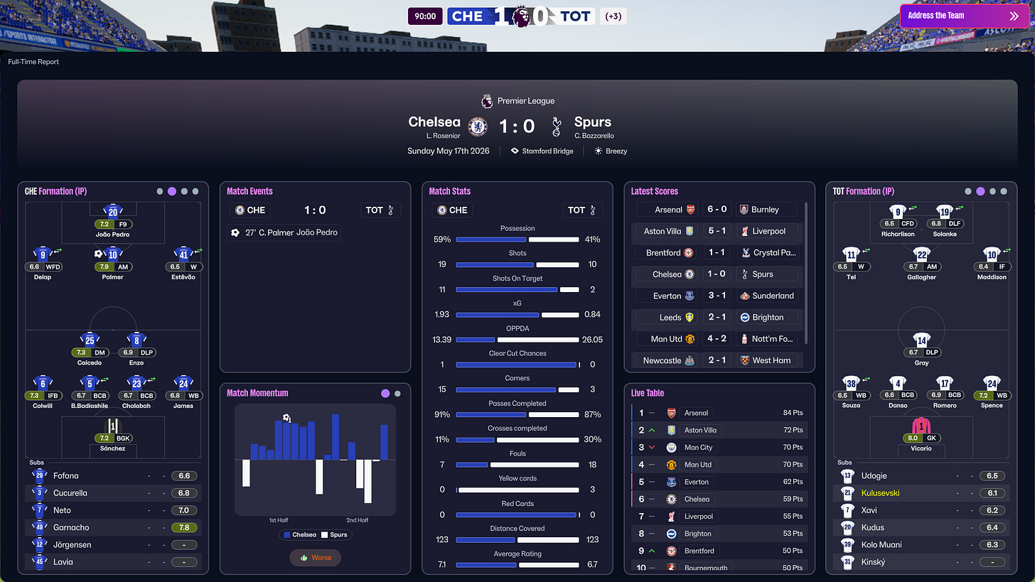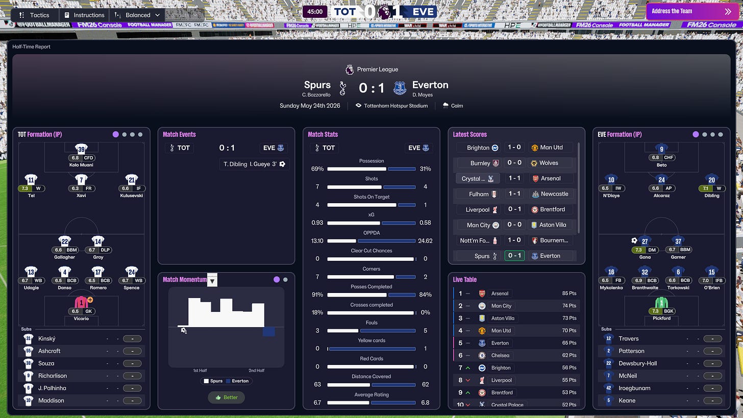 This experiment doesn’t prove that these exact choices would “fix” Tottenham in real life. But some patterns felt familiar. The players who performed, the recurring defensive errors, and the difficulty in controlling games all reflected real issues.