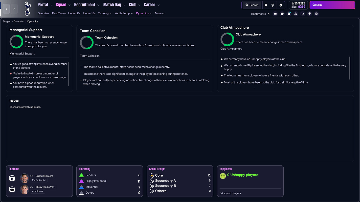 Just as important is the human side. Throughout the run, managing morale, praising performances, and keeping the squad engaged played a big role. Tactics matter, but so does belief. And in the end, the club atmosphere was actually pretty positive.